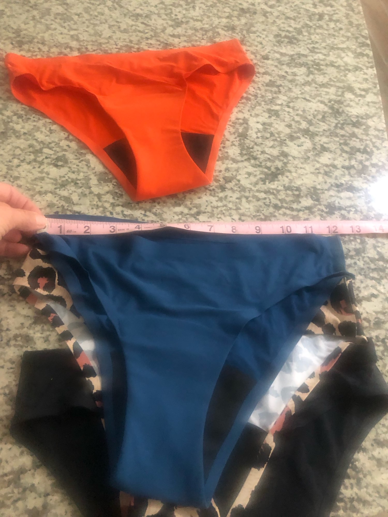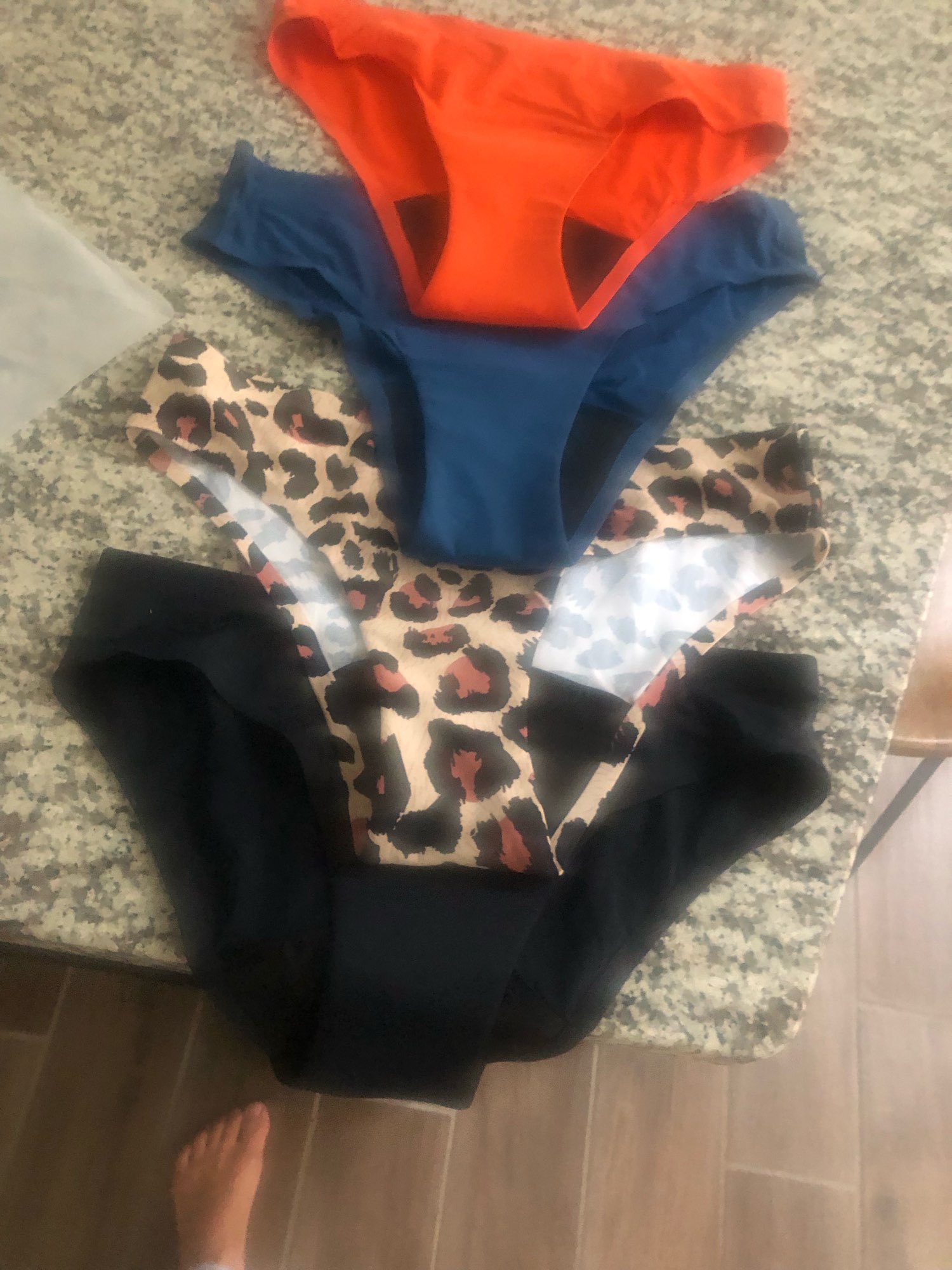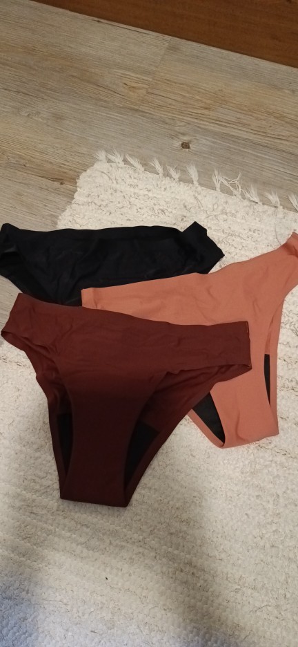 These undies are great quality, great texture and vibrant colors. They are exactly what I wanted. They are very well made and comfortable on the skin but unfortunately they run small… So just add 3” to the chart they have on the site. Add 3 extra inches on the waist. I measured exactly and they fit but they are super tight! So if you want them to fit comfy but secure SIZE UP! These are great products for a fraction of the price but the sizing is just off. When you measure take into account you will also be heavier when needing to wear these while on your cycle.